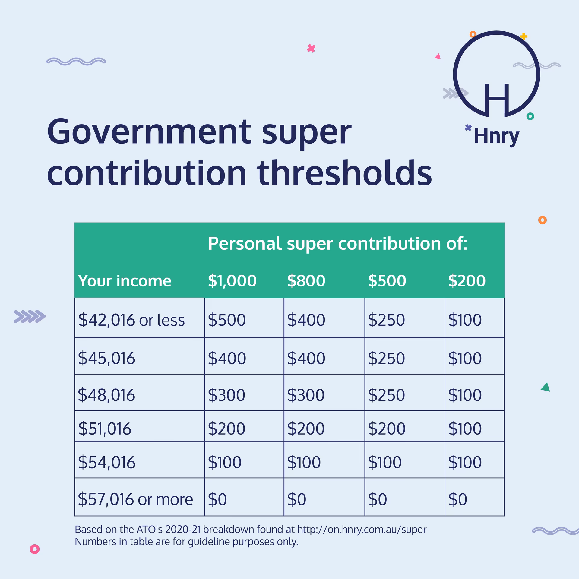 The amount of super the government is willing to contribute depends on two factors: