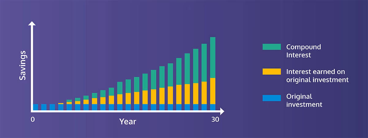 This kind of interest is called compound interest, and it’s magic. Compound interest can net you returns far beyond what you can save on your own.