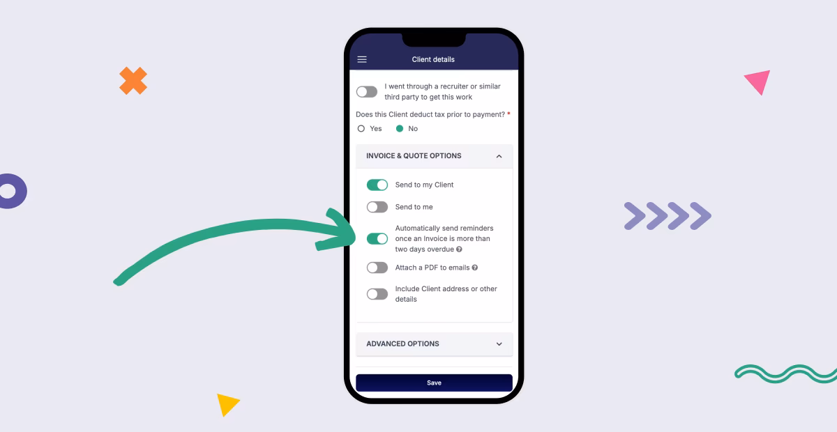 If you don’t want to use this feature, you can disable it on a client-by-client basis. Simply navigate to the “Clients” page, select the specific client, and under “Invoice & Quote Options”, turn off the switch labelled “Automatically send reminders once an Invoice is more than two days overdue”.