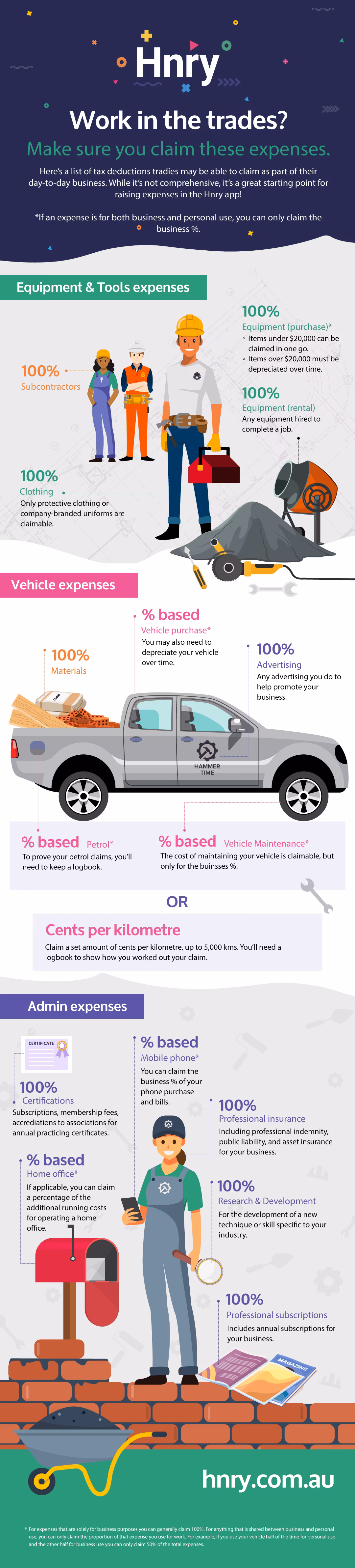 Here is a list of common expenses tradies can raise as part of their day-to-day business activity. While this list doesn’t have everything you can claim, it’s a great starting point for you to maximise your tax deductions.